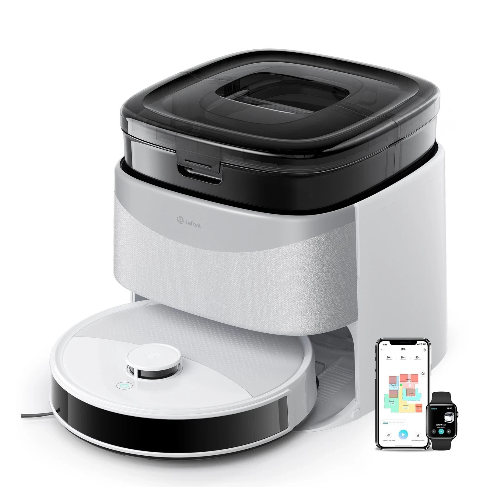 🧹 Lefant M3L Saug- & Wischroboter mit vollautomatischer Station. Rotierende Wischpads (200 U/min) für gründliches Wischen, 5200 mAh Akku für bis zu 220 Min. - Es gibt leichte Gebrauchsspuren und etwas Staub.