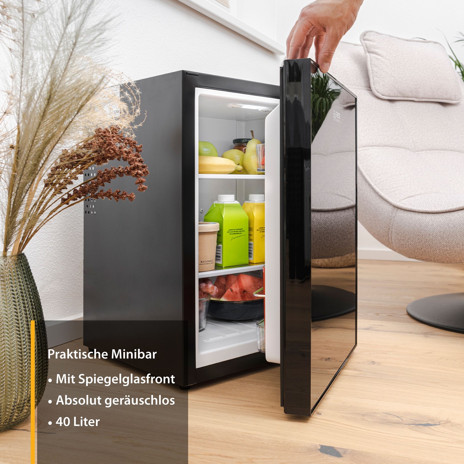 Minikühlschrank ohne Gefrierfach 40L Getränkekühlschrank lautlos LED-Beleuchtung