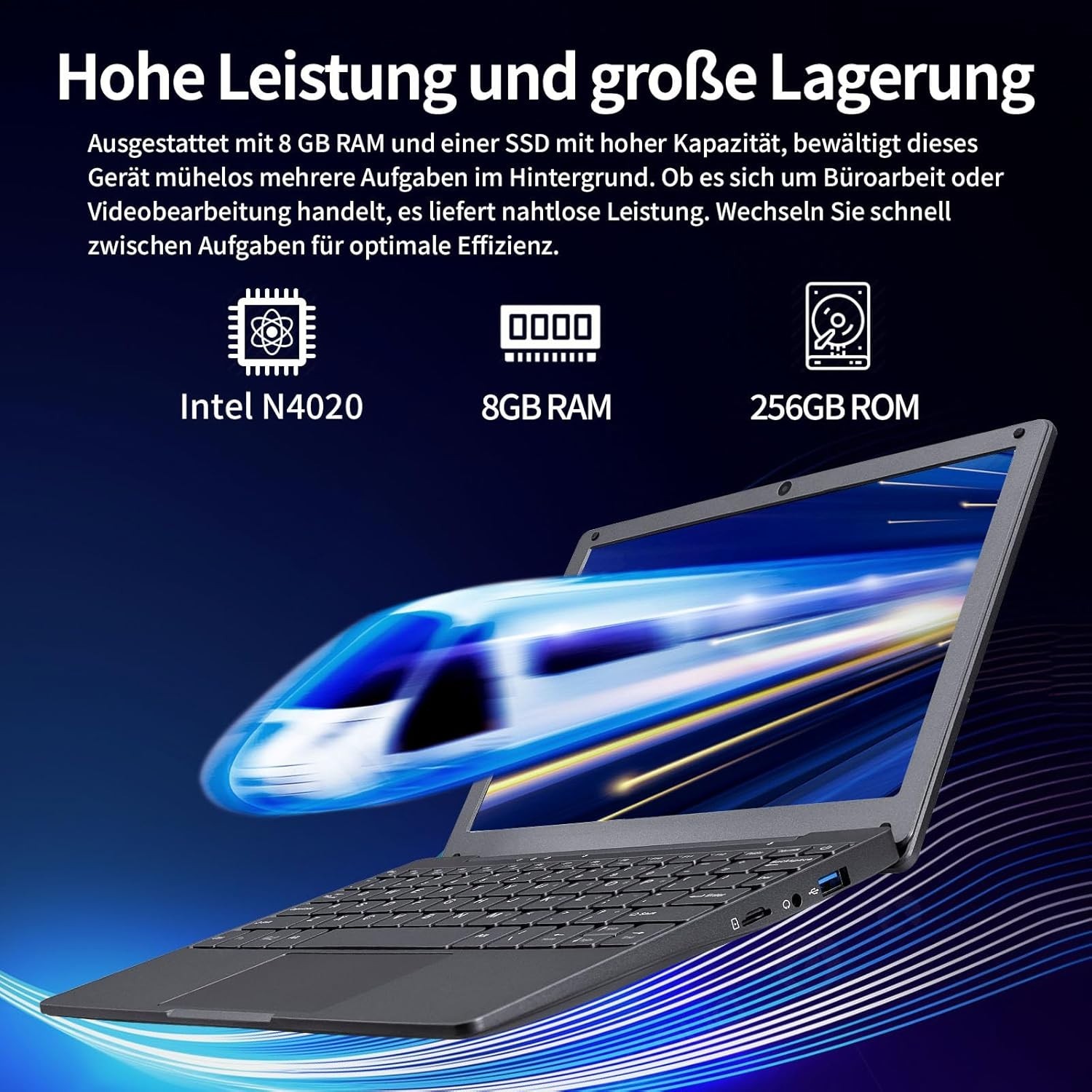 Zyphionix Laptop, Windows 11 Notebook, Leichtes Notebook, Tragbarer Computer, SSD Laptop 256 GB, 8 GB RAM Notebook, Büro Laptop, Full HD Display Laptop, Studenten Notebook, 10 Zoll Laptop, Celeron N4020 Laptop, Typ-C Ladegerät