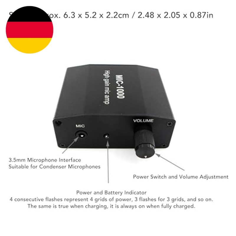 Mikrofonverstärker: Hohe Empfindlichkeit, automatische ALC-Pegelregelung, 1000-fache Verstärkung, wodurch Sie schwache Töne hören können. Zum Beispiel zwitschernde Vögel, zwitschernde Insekten. Paketliste 1 x Mikrofonverstärker, 1 x Netzkabel, 1 x Kopfhörerkabel.