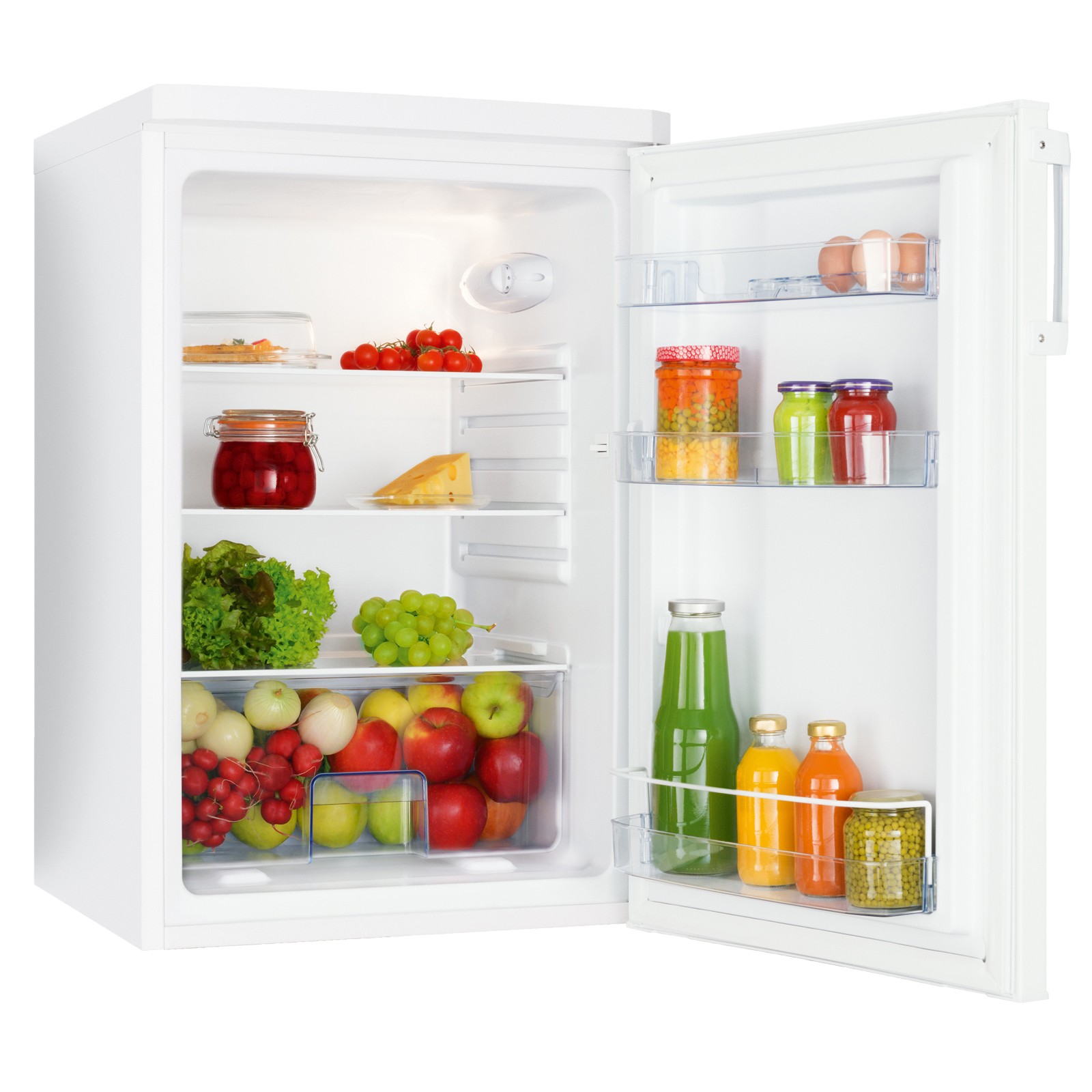 AMICA Vollraum-Kühlschrank VKS 15122-1 W - weiß - E, Nutzinhalt: ca. 120 Liter, 2 Glasablagen, Maße: BxHxT ca. 55 x 84,5 x 61,5 cm.