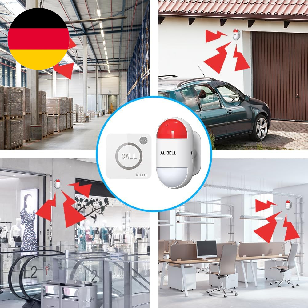 ALIBELL Persönlicher Alarm 120Db Sirene, Notfall Knopf Alarm Sicherheits System Für Haus/Geschäft/Fabrik, 2 Notrufknopf + 1 Sirene(Batteriebetrieben&Plug-In Netzbetrieb). Marke ALIBELL. [Multi-Szene-Anwendung] Das notfall knopf alarm system kann in Haus, Krankenhaus, Fabrik, Schule, Geschäft, Lager, und so weiter verwendet werden.