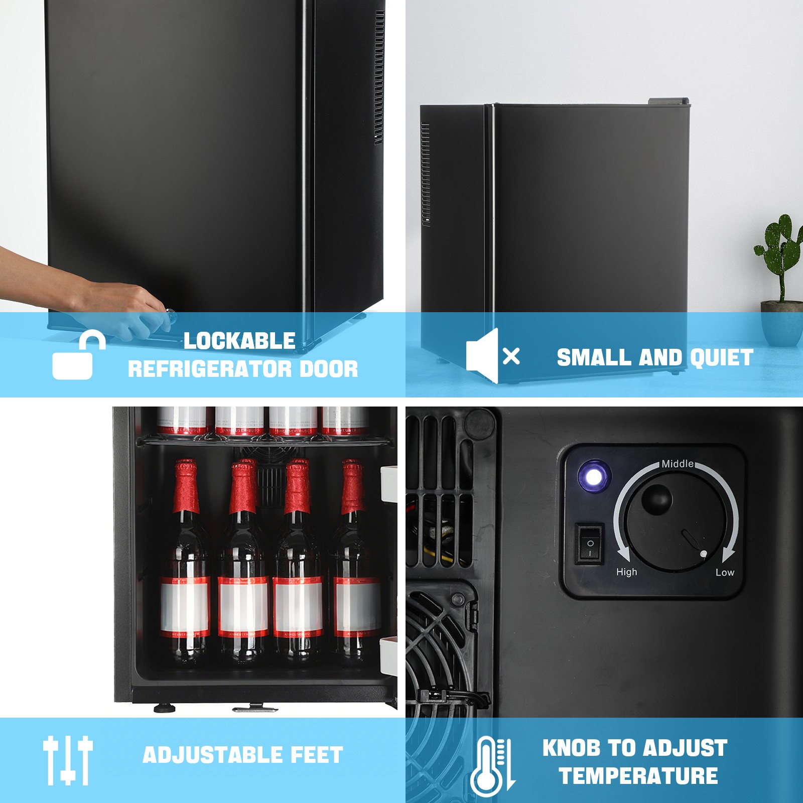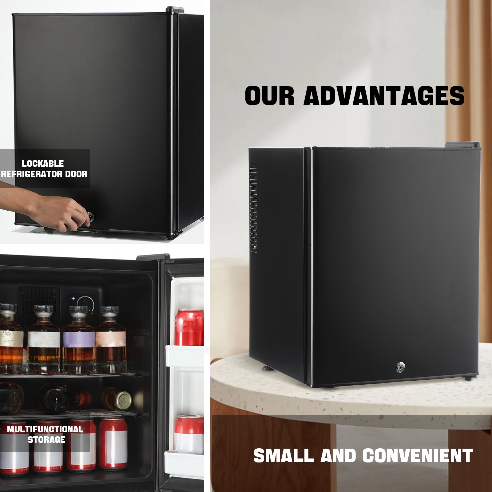 Minikühlschrank 30L Minibar Getränkekühlschrank Hotel Kühlschrank + Schloss LED