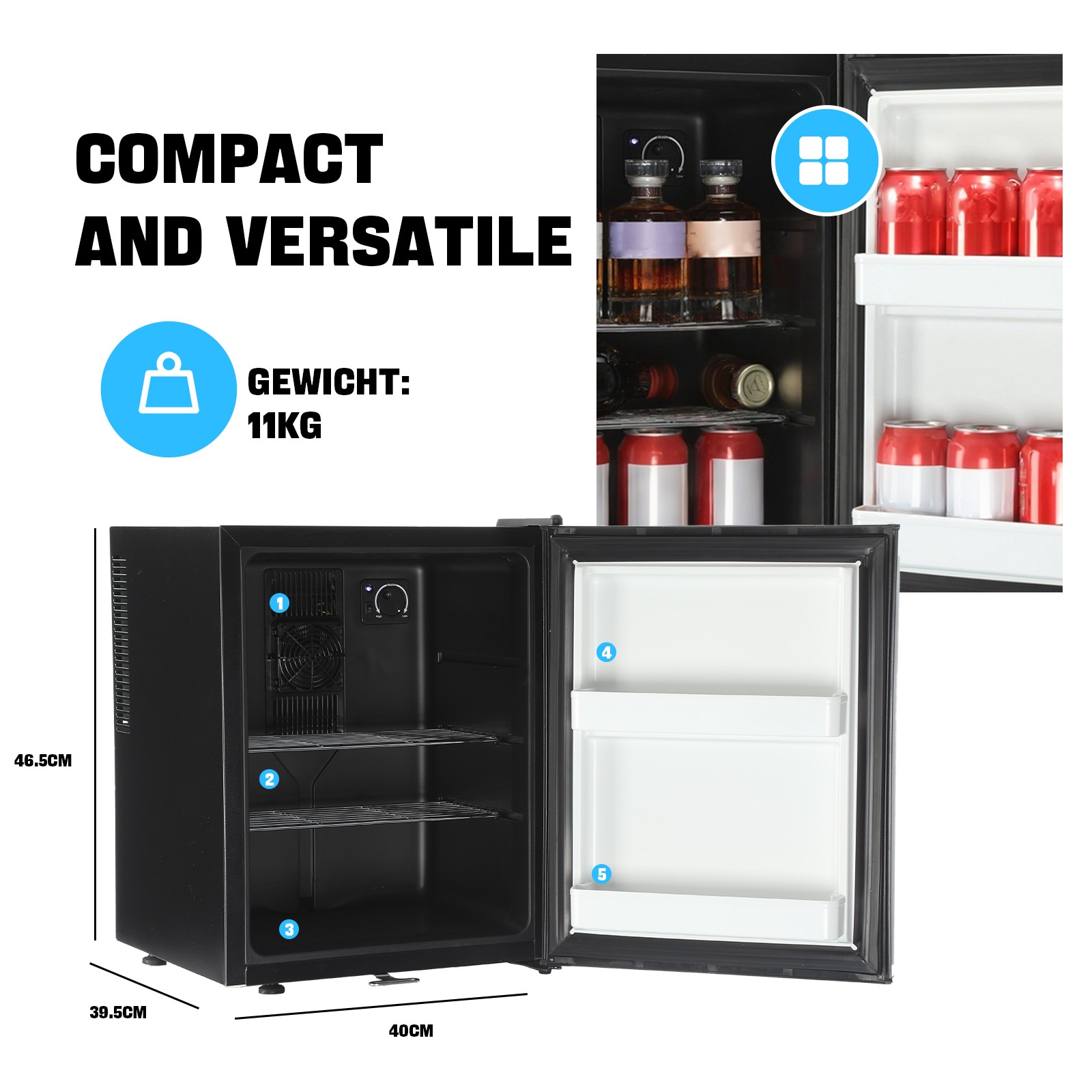 Umweltfreundlicher C-Pentane-Schaum sorgt für stabile Kühlleistung. Farbe: Schwarz (Innen & Außen). 【Großer Temperaturbereich 6.5–15°C 】. Temperaturbereich: 6,5–15 °C (bei 32 °C Umgebungstemperatur).