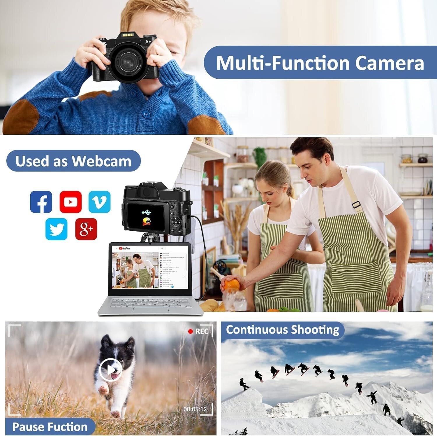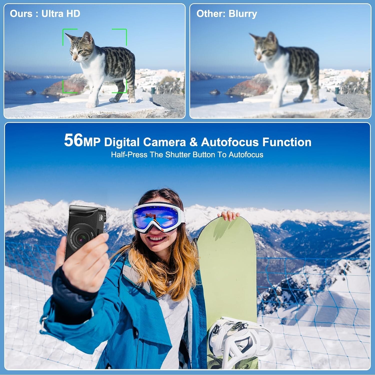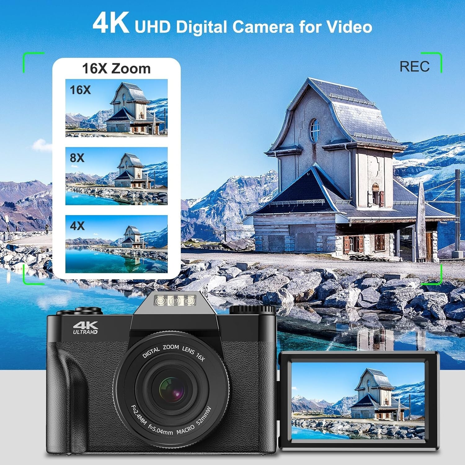 Digitalkamera 4K UHD Fotokamera 56MP 180° Flip Bildschirm 16X Digitalzoom